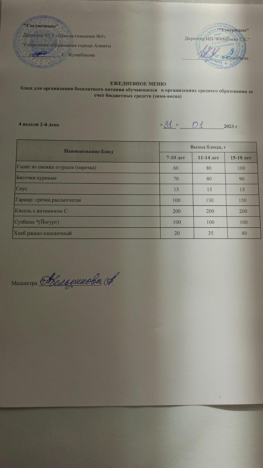 » МЕНЮ Меню блюд на 31 января 2023 года