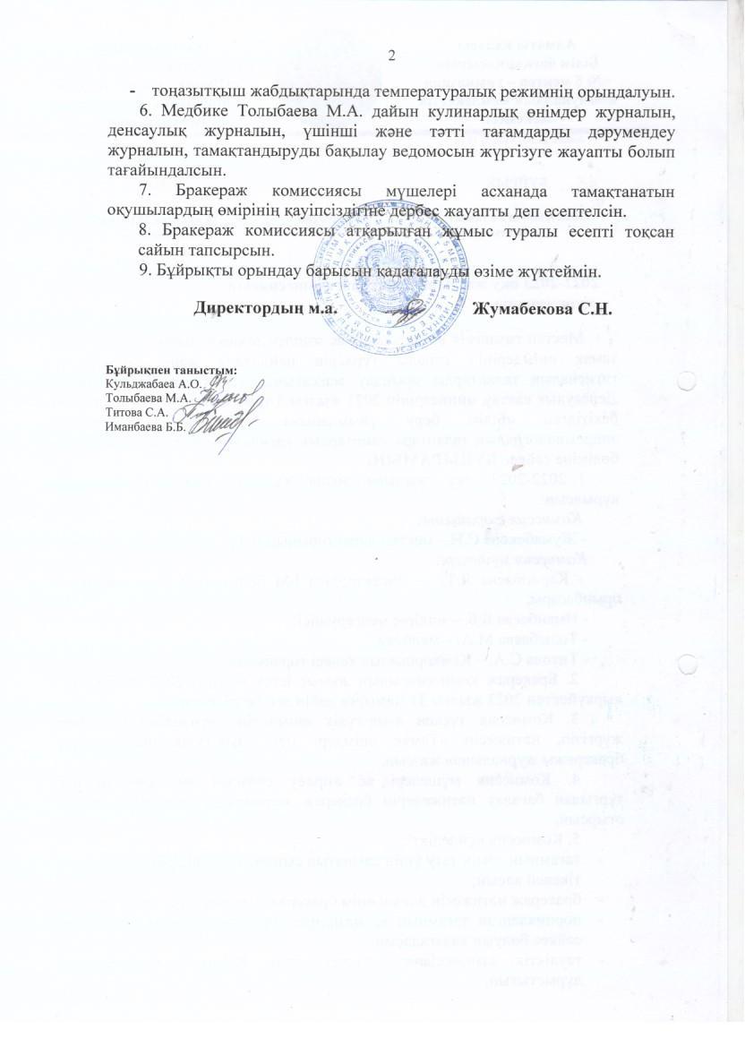 2022-2023 оқу жылына бракераж комиссиясын құру туралы
