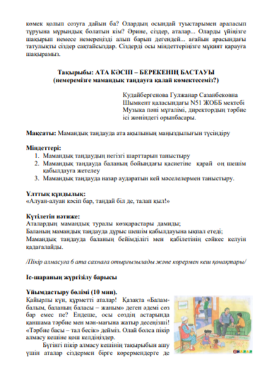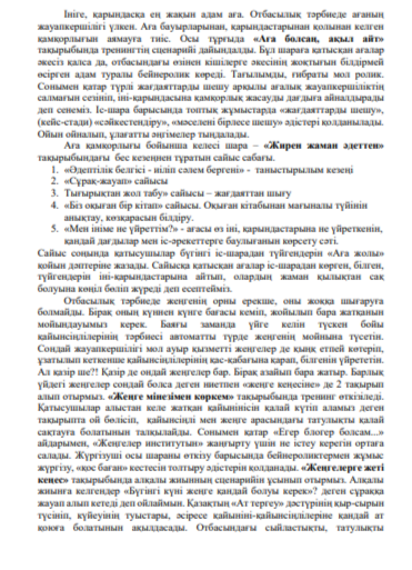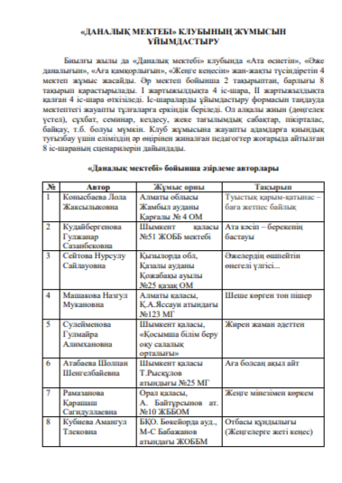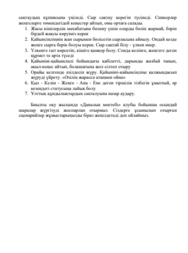 "Даналық мектебі" клубы жұмысын ұйымдастыру