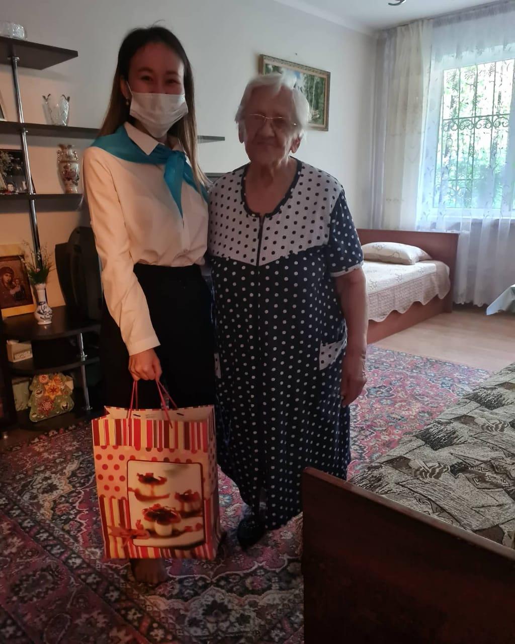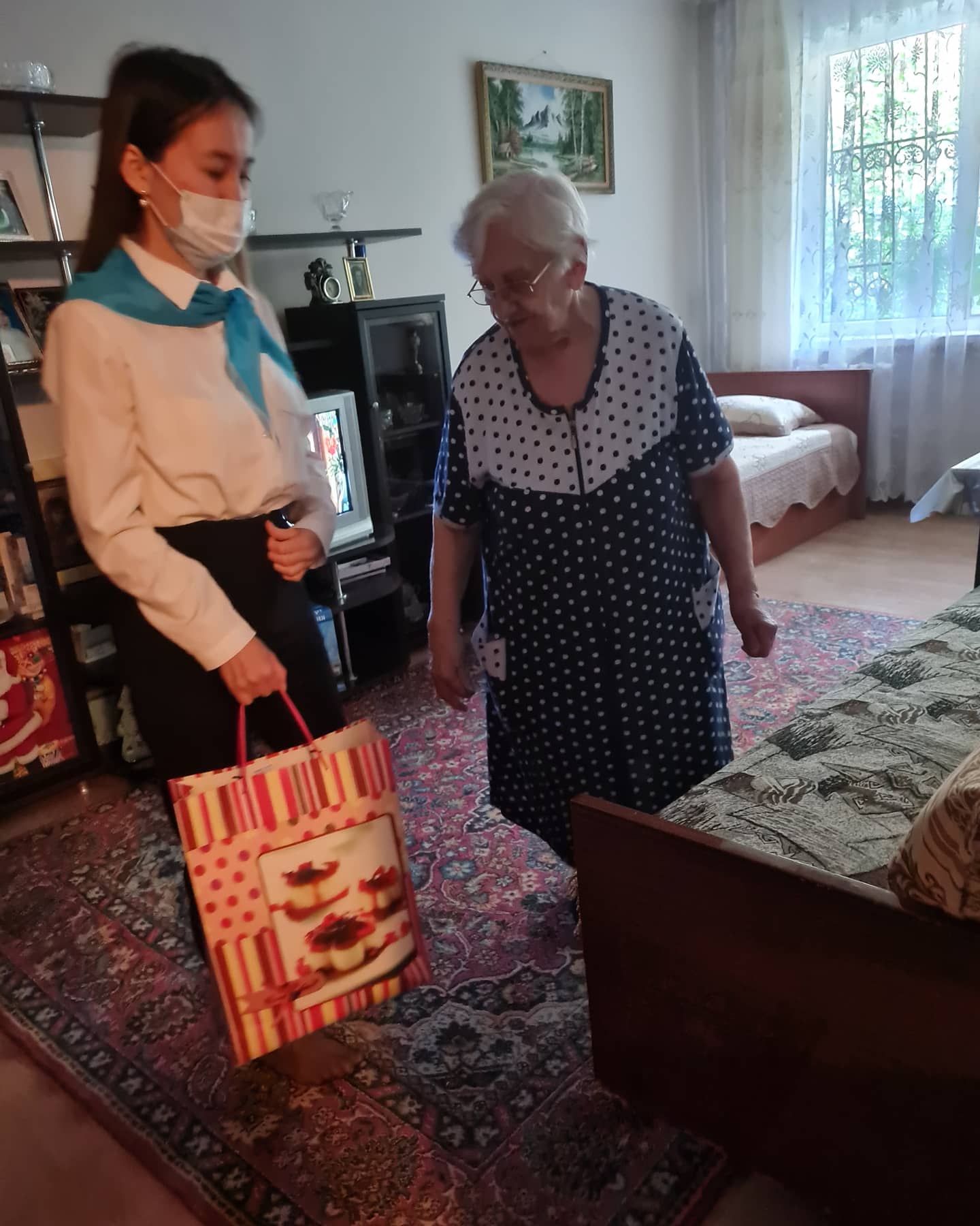 В преддверии празднования 76- летней победы над фашизмом и 30-летия независимости Казахстана школьная детско-юношеская организация "Жас Ұлан" традиционно в начале мая встречается с ветераном трудового фронта для поздравления.