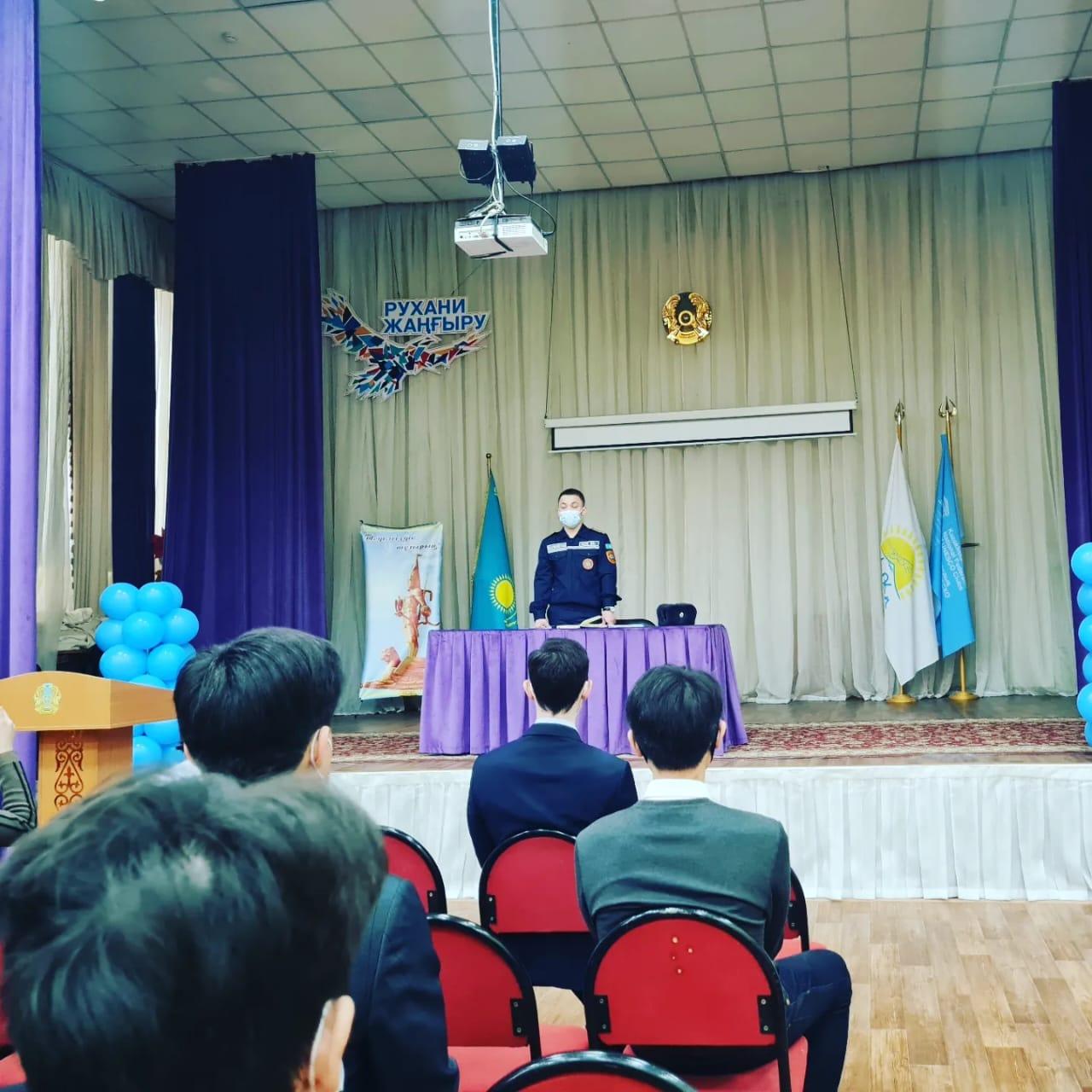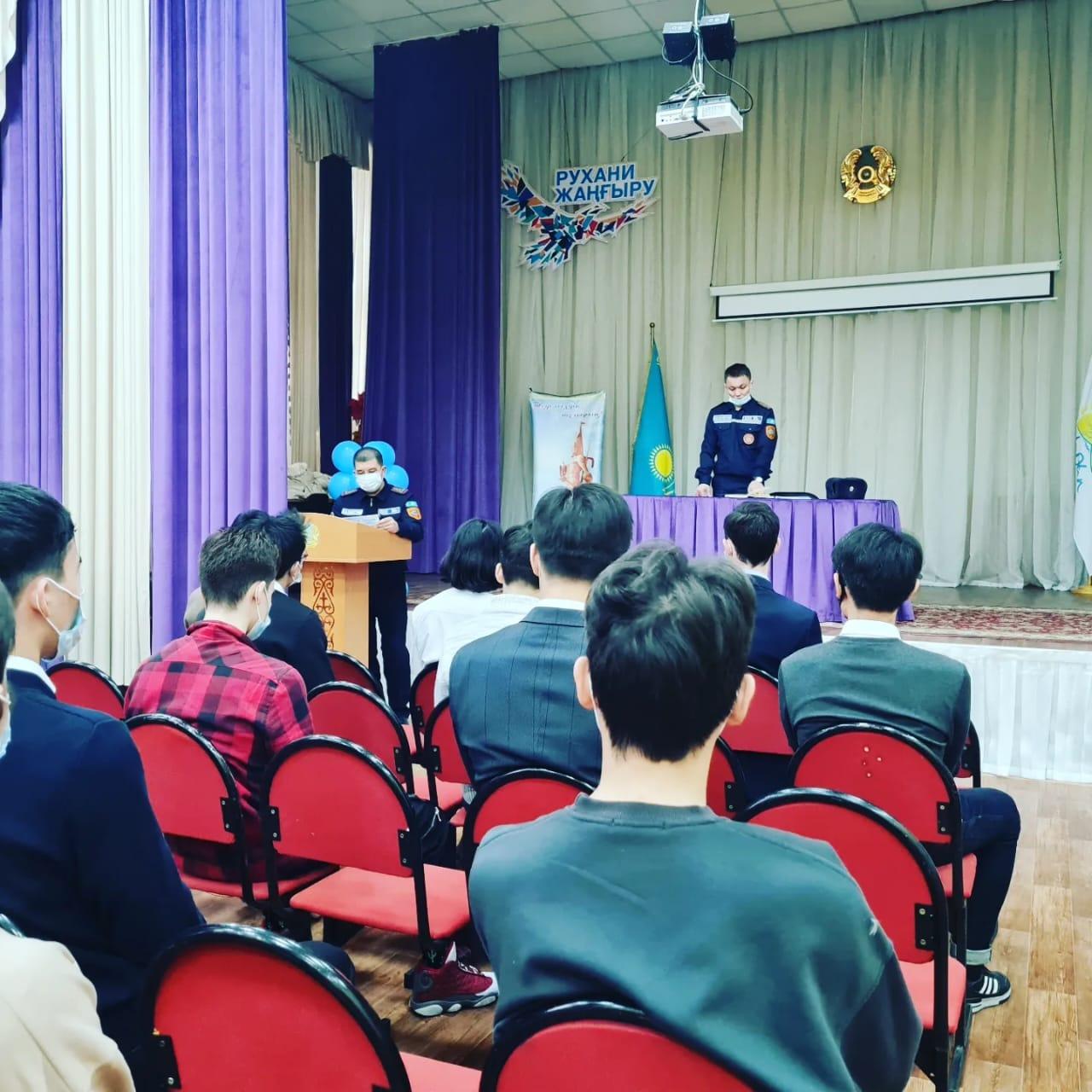 Әуезов ауданы Төтенше жағдайлар басқармасының капитаны Ильясов Алмас Ерболұлы мен Қазақстан Республикасы ТЖМ М.Ғабдуллин атындағы Азаматтық қорғау академиясының 4 курс курсанты Ануарбеков Ербол Бауыржанұлы ағымдағы жылдың 09-шы ақпан күні, «№5 мектеп-гимназия» KMM 11 сынып оқушыларына М.Ғабдуллин атындағы Азаматтық қорғау академиясына оқуға түсу туралы түсіндірме жұмысын жүргізді.